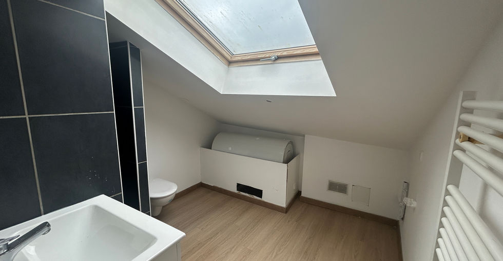 Composé d'une entrée avec escalier privatif, une grande pièce à vivre de 26m2 Carrez (56m2 au sol) avec cuisine ouverte, une chambre, une salle d'eau.